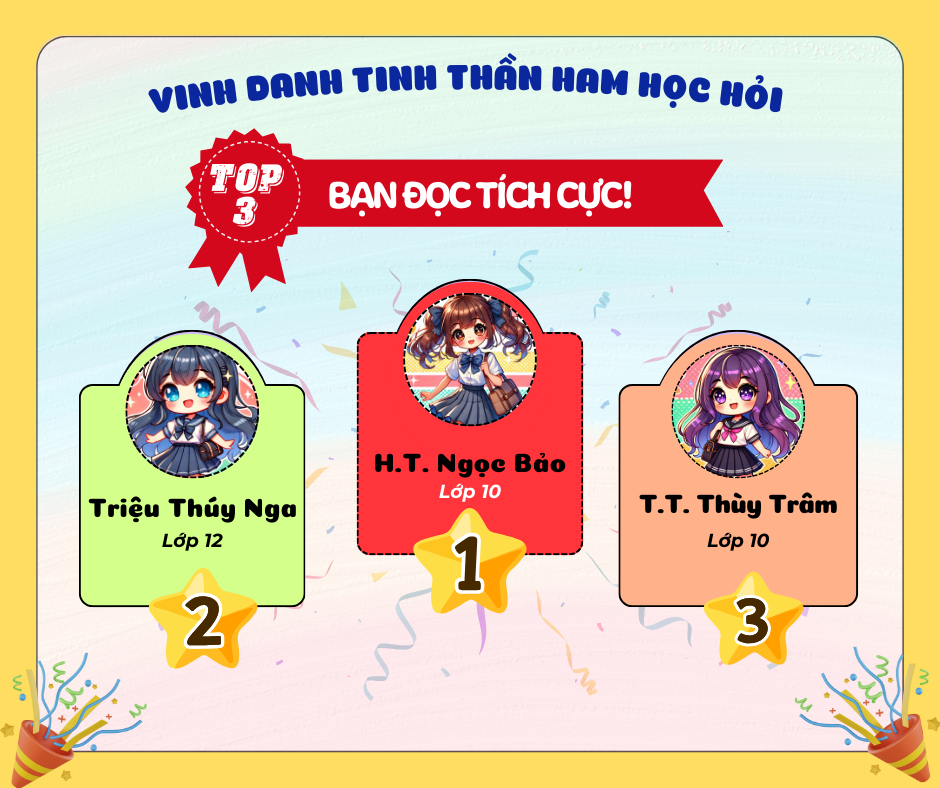 Đối với khối THPT, trong tháng 3, ba em học sinh có thành tích nổi bật gồm: