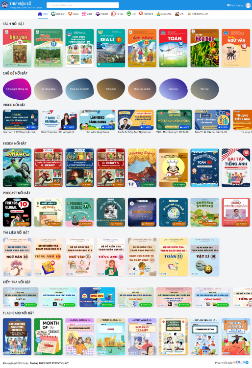 Triển khai hệ thống lưu trữ đám mây: Xây dựng một nền tảng thư viện số dựa trên công nghệ đám mây cho phép quản lý và truy cập các tài liệu số. Đây là nơi học sinh và giáo viên có thể tìm kiếm, đọc, xem, nghe, luyện tập và tải tài liệu.